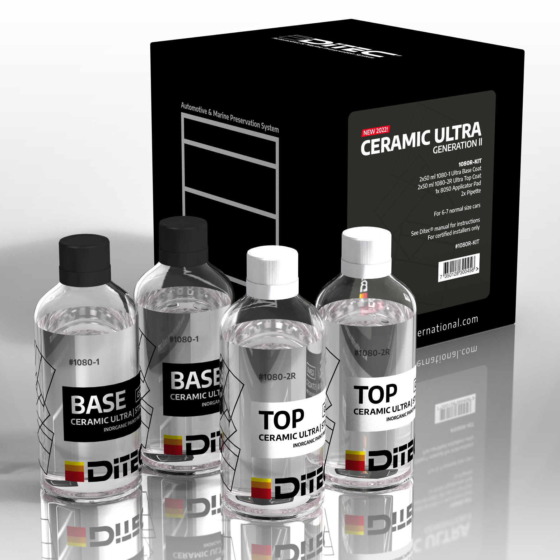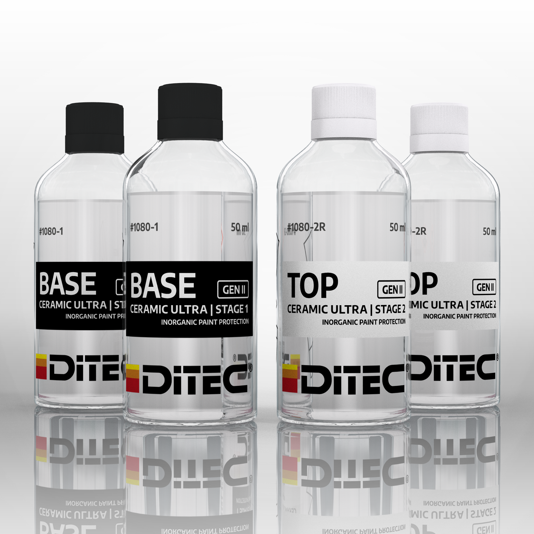 DITEC Ceramic Ultra is a multi layer inorganic ceramic paint protection for all types of vehicles. It consists of a hard protective undercoating (Base Coat) and a sacrificing hydrofobic top layer. (Top Coat)