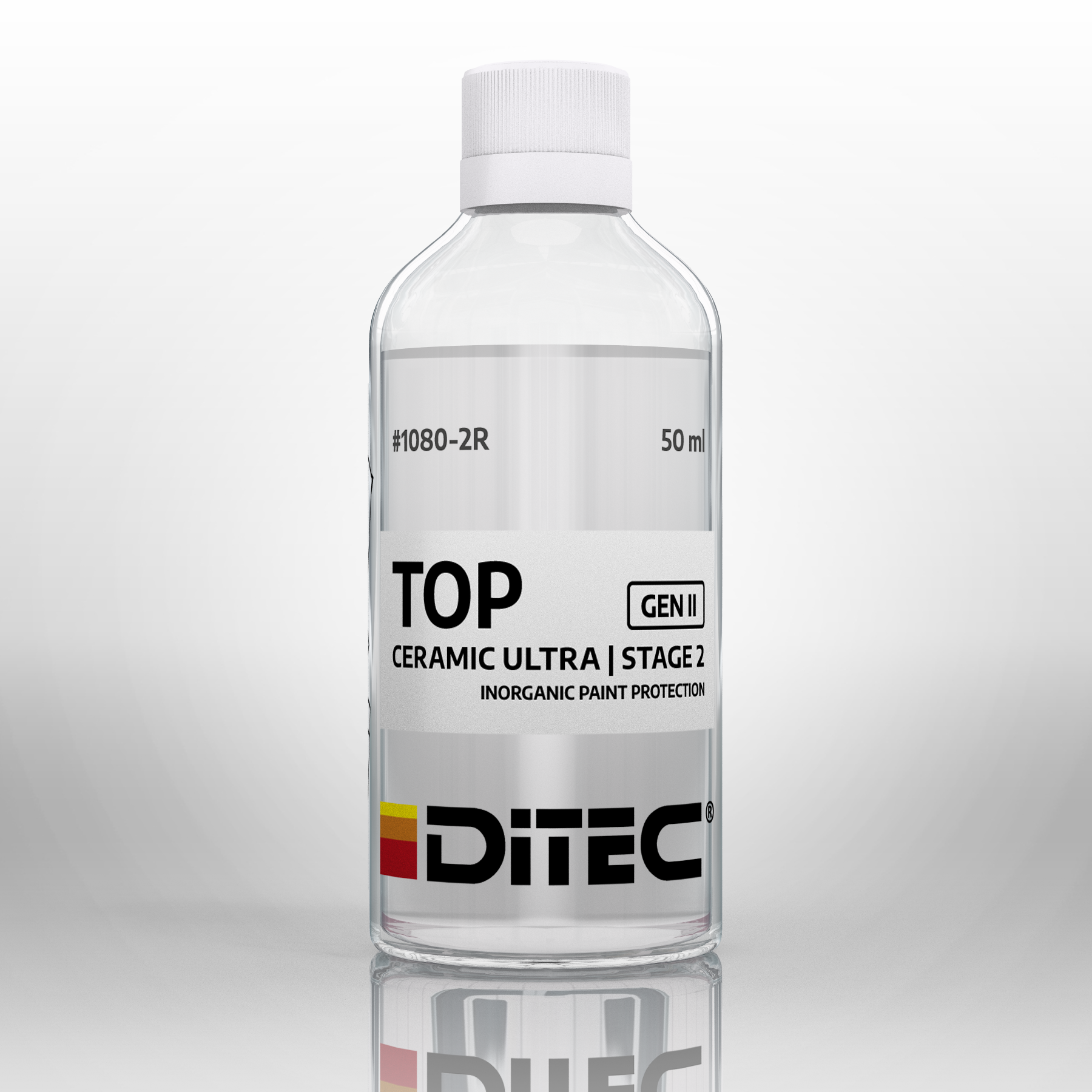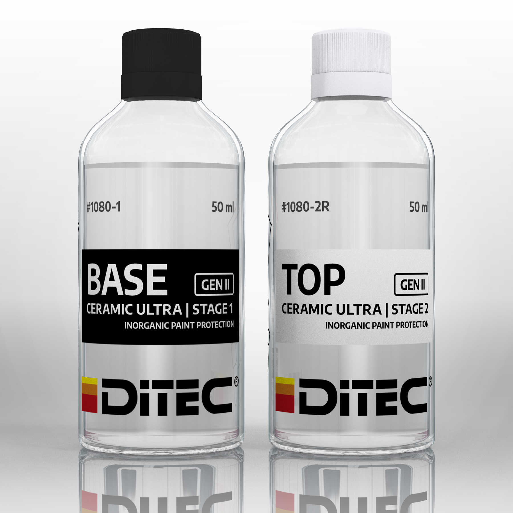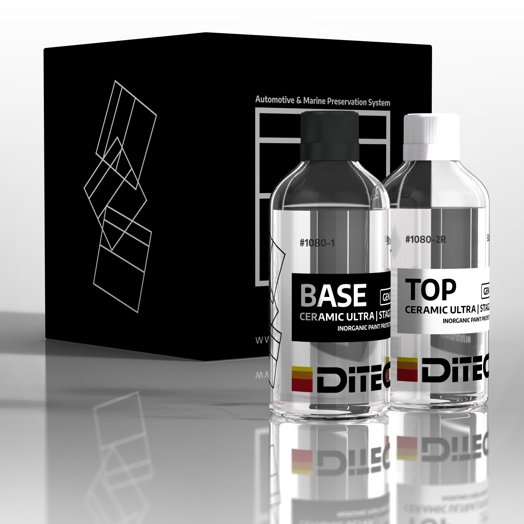 DITEC Ceramic Ultra is a multi layer inorganic ceramic paint protection for all types of vehicles. It consists of a hard protective undercoating (Base Coat) and a sacrificing hydrofobic top layer. (Top Coat)