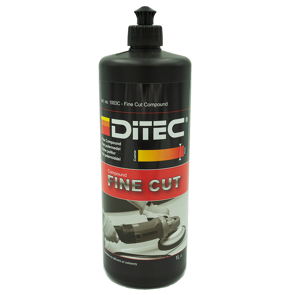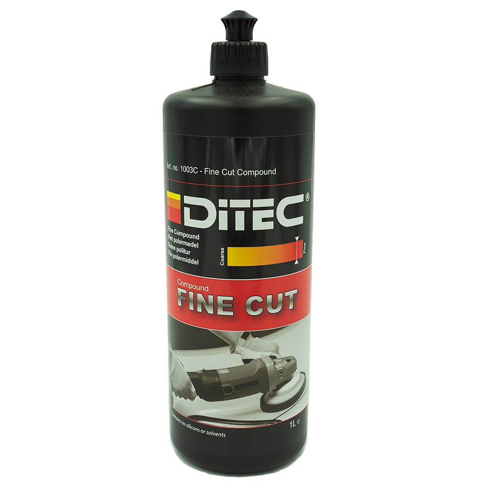 For processing we recommend the red polishing pad. Apply sufficient amount of Ditec Fine Cut to the polishing pad or the paint surface, spread at low speed (about 1.000 rpm) on the defect and at about 1.600 rpm. and moderate pressure.