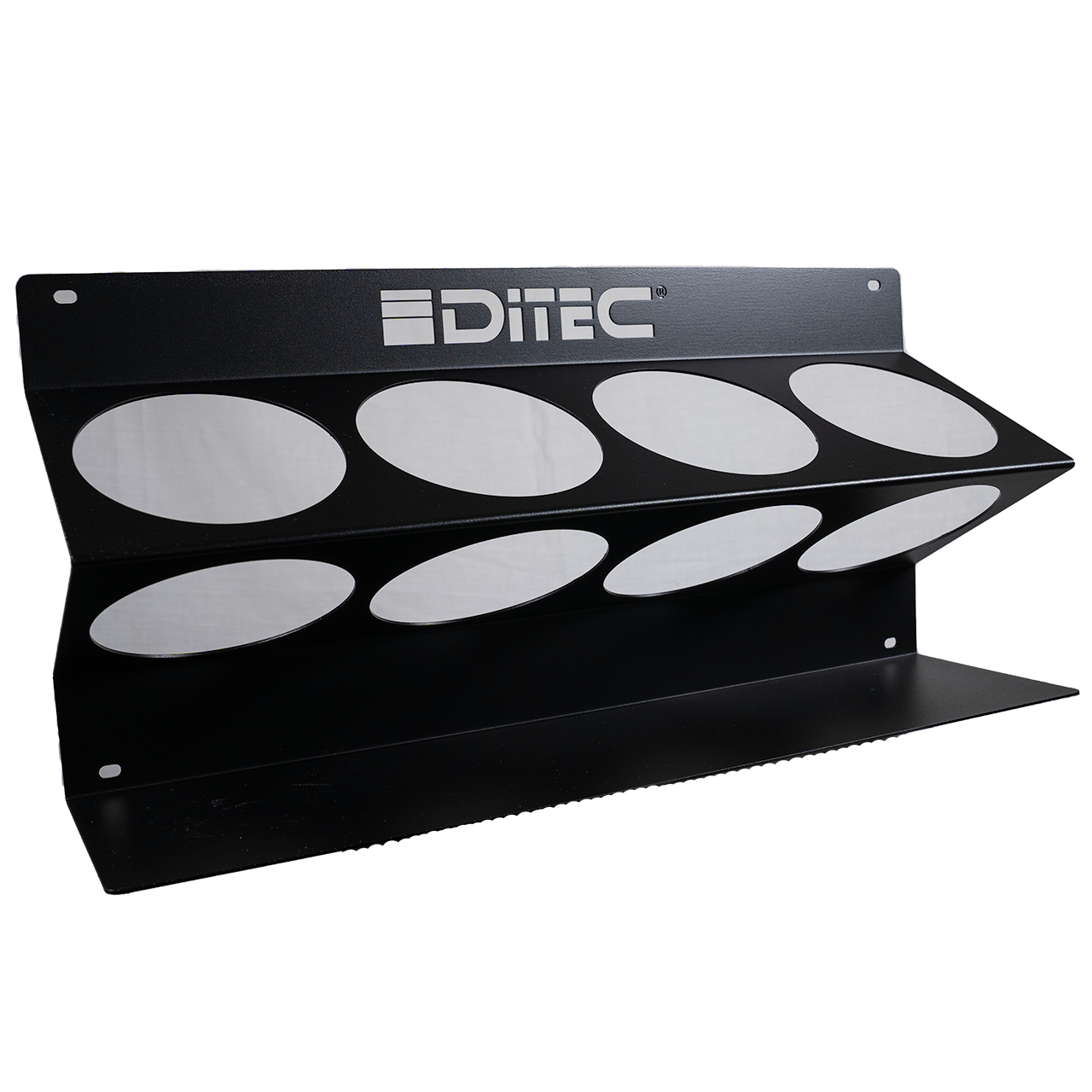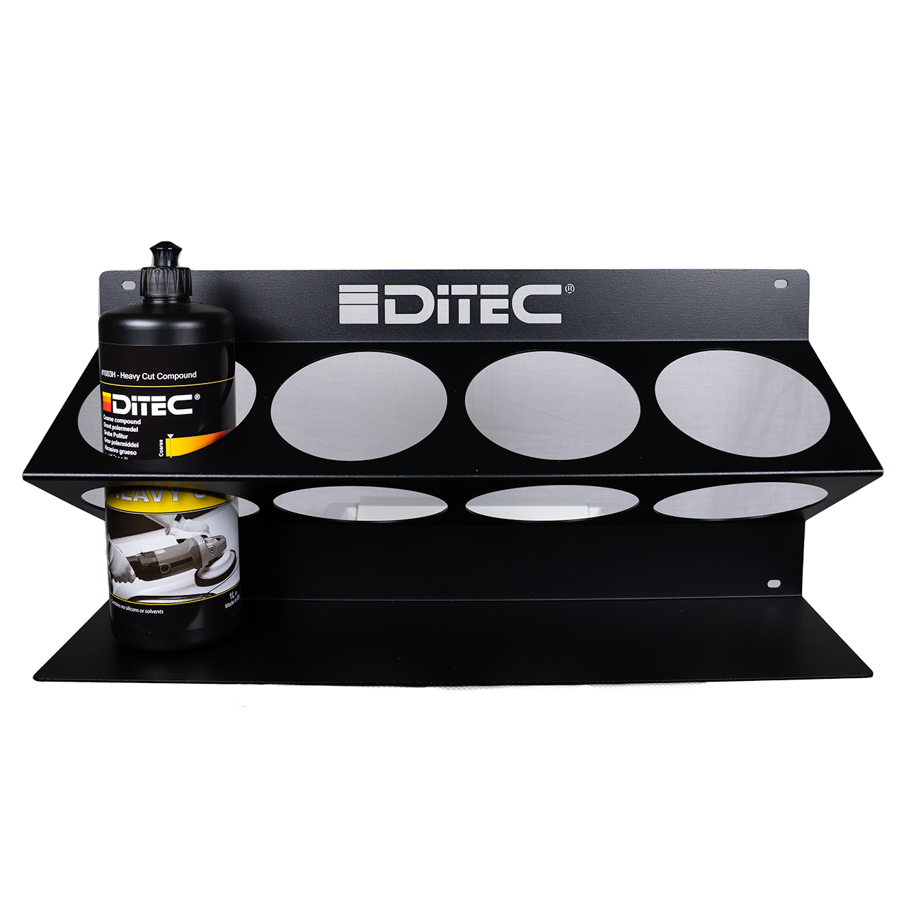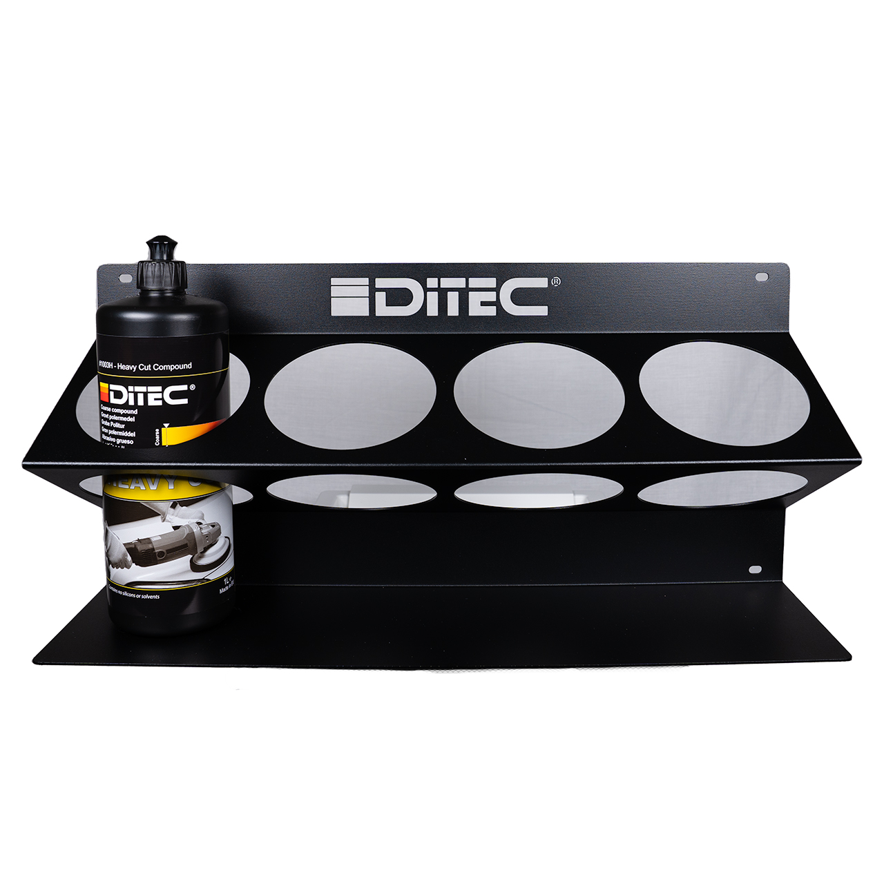 Bottle holder is perfect organizer for 4 favorite, large-size bottles with a capacity of up to 1.5L. It is made to put bottles without straining their atomizers. It i also great solution for storing polishing pastes. 4 mounting holes makes it resistant for a high loads without bending. No sharp corners which make it safe in use. It can be mounted on Premium detailing trolley with modulate legs (multi hole legs) as a additional hanger. Dimensions: Length: 50 cm Width from the wall: 13 cm Height: 24 cm Bottle hole diameter: 10,9 cm