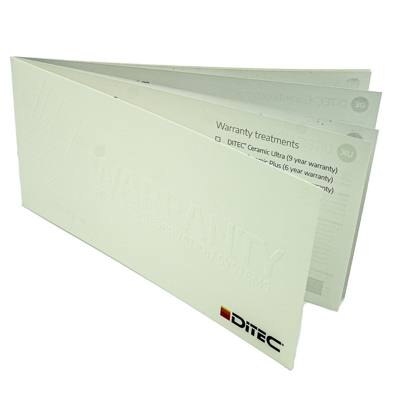 Warranty Card for our Car Protection Program. Multi language: ENG, ESP, GER, SE, NO, DK.